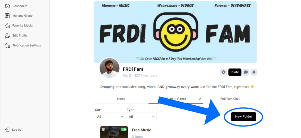 One of the best parts of Grouped is organizing your media into folders – this allows your content to be binged by fans and allows you to separate media based on who should have access – (a) all members (b) just paid members (c) everyone has to pay a set price (d) anyone can pay what they want.