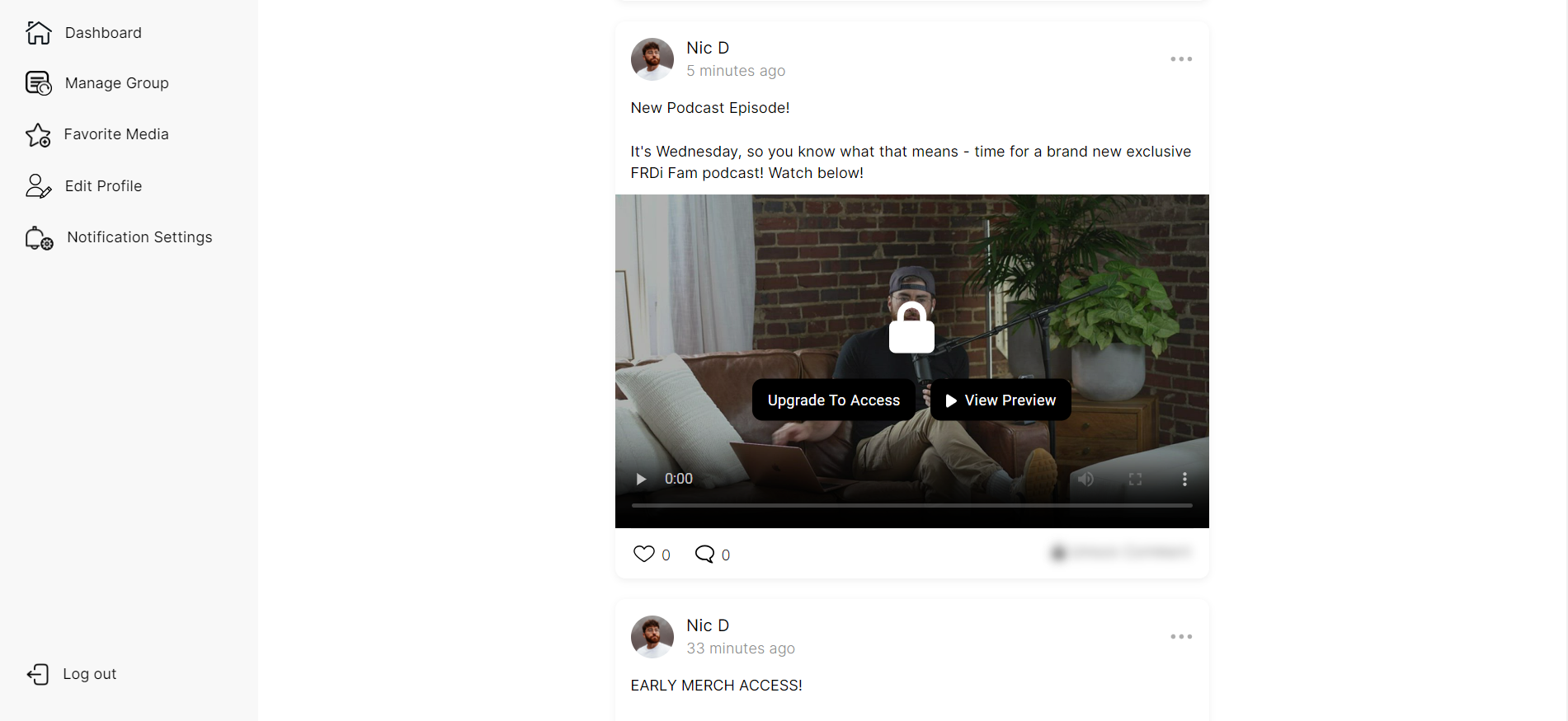 5. Free members will see this view (paid members will be able to play the media directly from the home feed)