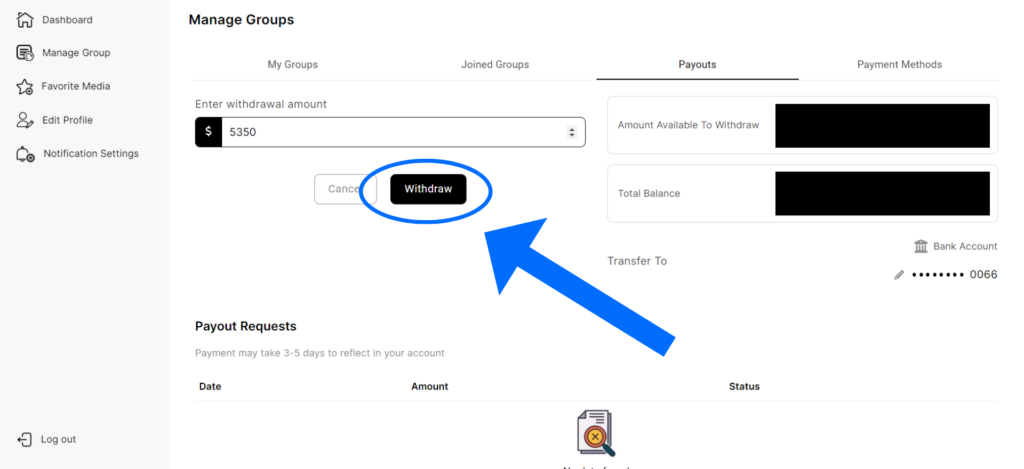 3. Enter the amount and click “Withdraw”