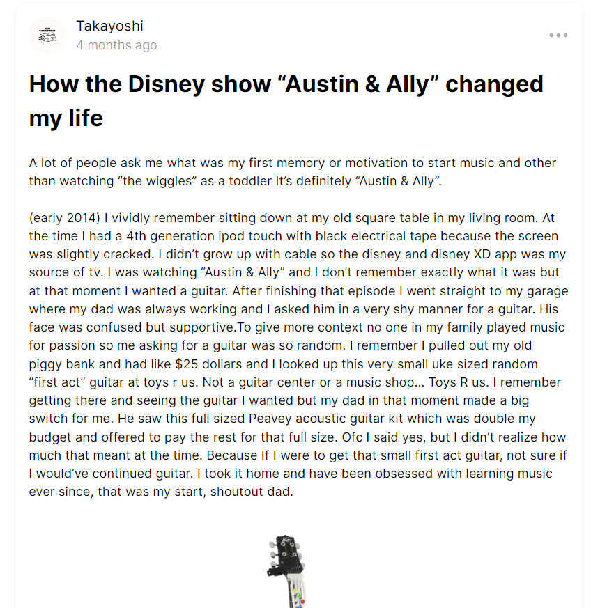 Check out some examples below – including Takayoshi – who has written about his love for Capabryas, the story of his first guitar, and more! You can tell by the engagement that this is the type of content fans LOVE!