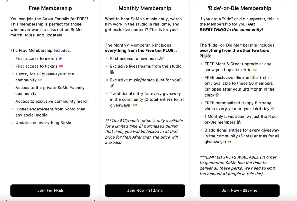 A simple rule is to always under promise and over deliver for your fans! When you are setting up your tiers, it’s important to reward your fans for signing up without promising them too much. In the beginning, it is better to be vague than overly specific – so instead of saying “2 Exclusive Live Streams a month”, you can say “Exclusive Live Streams”. Then as you get in a routine and you understand what your fans are enjoying best, you can be more specific!